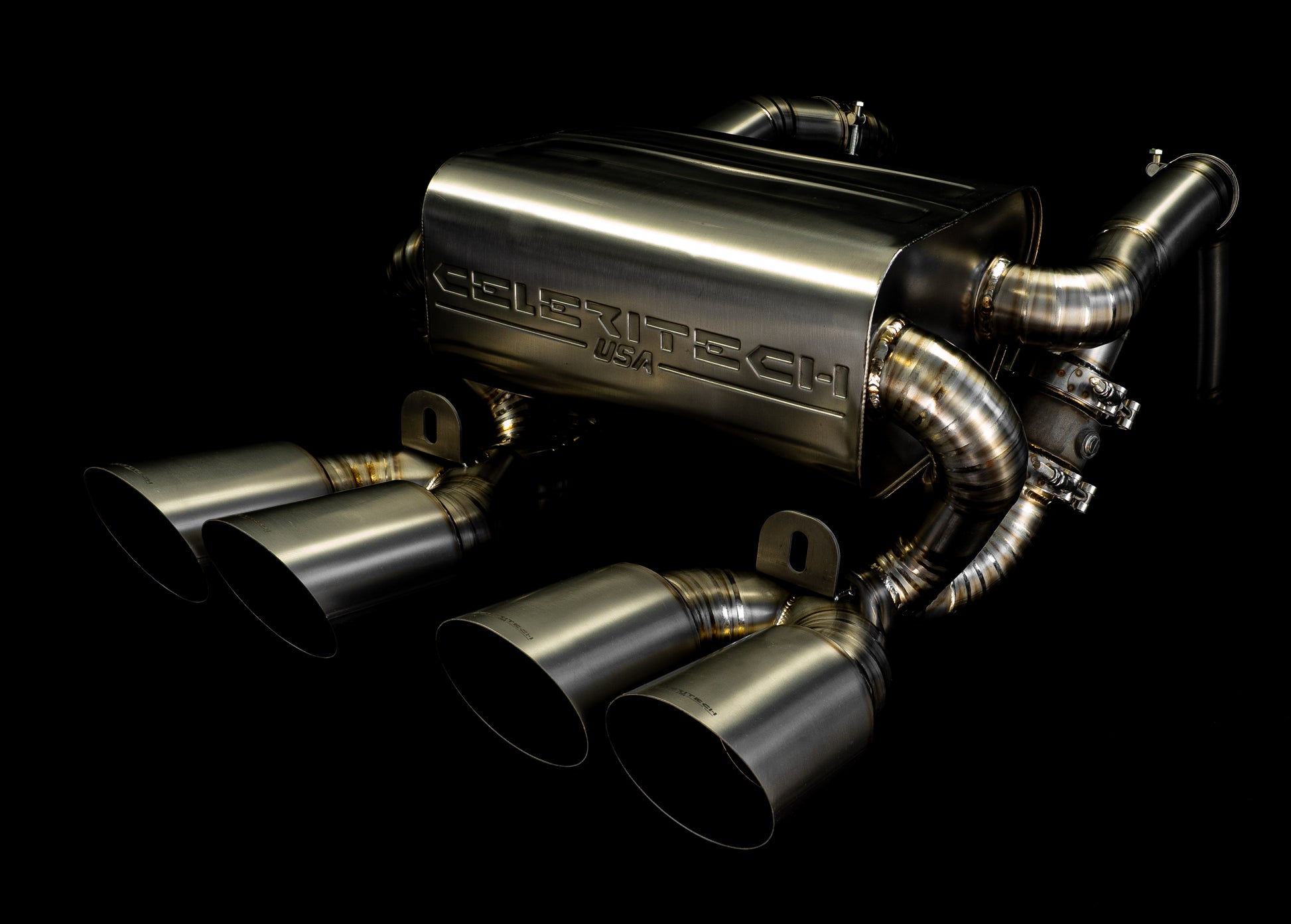 - 4 quick release V-band clamps so you can swap out transitions easily to fit a stock exhaust/silencer to Celeritech headers, or fit stock headers to Celeritech exhaust/silencer. (transitions should be ordered separately)